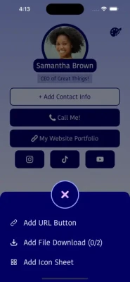 With the AirSlips app, you can easily create and customize a profile that showcases your persona or professional brand. You can add a profile picture, name, and bio, matching your unique style with a customized gradient background. Don’t forget to add some buttons! Whether it be downloadable contact information or links to your social media and websites, you can make it easy for your friends, partners, and clientele to find you all across the web.