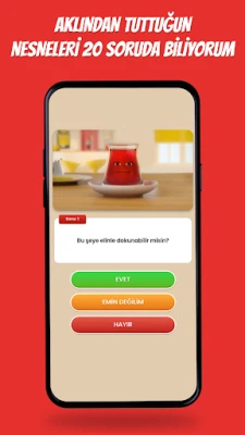 - Oyunun başında sizden bir nesneyi aklınızda tutmanız isteniyor. - Ardından size aklınızdaki nesne ile ilgili sorular soruluyor ve bu sorulara "EVET", "HAYIR" ya da "EMİN DEĞİLİM" cevaplarından birini vermeniz bekleniyor. - Verdiğiniz cevabı değerlendiren Akıllı Çay Bardağı, size başka bir soru daha soruyor ve sizden tekrar cevap bekliyor. - Ortalama 20 soru sorduktan sonra aklınızda tutuğunuz nesneyi tahmin etmeye çalışıyor.