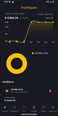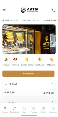 AKTIP Kuyumculuk & Mücevherat uygulamasıyla güncel altın ve döviz fiyatlarını takip edebilir, portföyünüzü yönetebilir, anlık kazanç-zarar durumunuzu görüntüleyebilirsiniz. 24 ayar, 22 ayar, çeyrek, yarım ve tam altın fiyatlarını detaylı inceleyin. Dark mode desteği ve kullanıcı dostu arayüzüyle yatırımınızı kolayca yönetin.