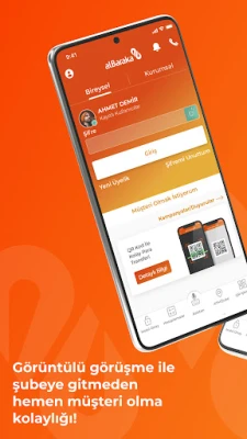 Albaraka Mobil’de iki faktörlü doğrulama yöntemi kullanılmaktadır. Uygulamaya, dilerseniz müşteri/TC kimlik numarası ve şifre ile dilerseniz yüz tanıma özelliği ile giriş yapabilirsiniz.