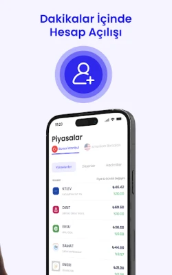 Uygulamayı indirerek çok kısa süre içerisinde yatırım hesabını açabilir, para transferleri sonrasında yatırım dünyasına adım atabilirsin.
