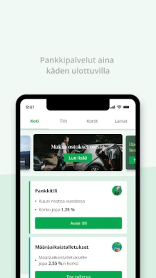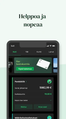 Mobiilipankki on paras tapa pankkiasiointiin. Voit hoitaa asioitasi juuri silloin, kun se sinulle parhaiten sopii. Tee talletus tai hae ja hallinnoi lainaa helposti ja nopeasti.