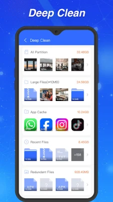 ALL Cleaner - All in one File Manager & Phone Storage Cleaner is an excellent and comprehensive phone cleaning & File Manager app. If you're running out of space on your phone, you can try out features like Quick Space Cleaner, Deep Cleaner, and Photo Cleaner to clear unnecessary space occupied, you can also use the file management feature to manually organize and delete files you don't need.