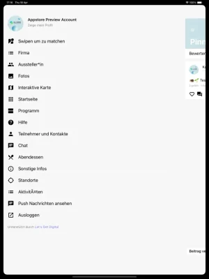 The NFDI4Biodiversity All Hands Conference App allows users to stay up to date about news and changes, virtually attend the event, see the conference's program, set up their profile and connect with other participants.