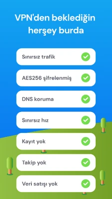 Her bağlantıyı AES256 ile şifreliyoruz ve sunucularımızın kütüğü yok. Ayrıca, güvende olmanız için DNS isteklerinizi güvenceye alıyoruz. IP sızıntılarına karşı korumamız var, böylece IP adresini güvenle değiştirebilirsiniz.