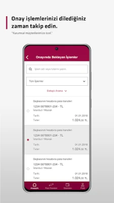 • Kurumsal müşterimiz iseniz, onayda bekleyen işlemlere anasayfa üzerinde gösterilen bildirim alanı ile ulaşabilir, bu özellik ile onay işlemlerinizi pratik bir şekilde takip edebilir ve onay verilecek işlemlere kolaylıkla ulaşabilirsiniz.