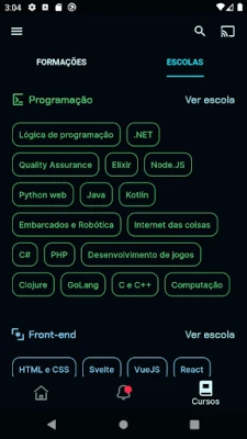 Cursos e Formações com conteúdos do mercado para você se capacitar em Programação, Front-end, Data Science, Inteligência Artificial, DevOps, UX & Design, Mobile e Inovação & Gestão.