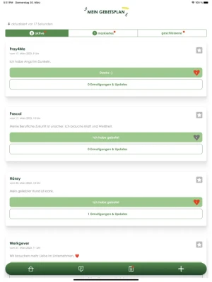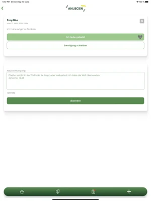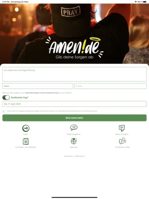 Amen.de ist völlig anonym - nicht einmal eine Anmeldung ist erforderlich (aber möglich, wenn du magst). Trotzdem siehst du über die App, wieviele Leute für dein Anliegen beten. Sie können dir sogar kurze persönliche Ermutigungen zukommen lassen und du kannst ihnen mitteilen, wenn sich etwas bezüglich deines Anliegens getan hat! Also anonym und doch persönlich…
