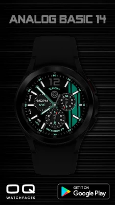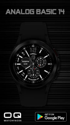 1. Tap on OQ logo to open Watch settings menu. 2. Tap on date text to open watch calendar app. 3. Tap in battery chronometer center to open watch battery settings menu. 4. Background color option changes color of background. 5. Color option in customization menu deals with various styles of hands and text color combinations. Please see the screen previews for various examples. 6. The outer index can be dimmed according to your taste from customization menu 7. 2 x Dim Modes are available separately for Main and AoD Display. 8. Tap inside steps chrono to open steps counter.