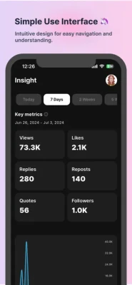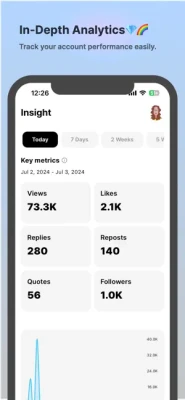 Thread Insight - Analytics is a comprehensive third-party analytics tool designed for Threads users, utilizing the official Threads API provided by Facebook. This app is not affiliated with or endorsed by Facebook or Threads, but leverages their API to provide valuable insights.Easily and intuitively analyze your activity data with our app. Key features include: