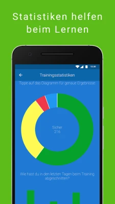 Ein intelligenter Algorithmus zeigt dir deinen Stand. Zusätzlich siehst du alle Statistiken – so wird die Prüfung zur Formsache.