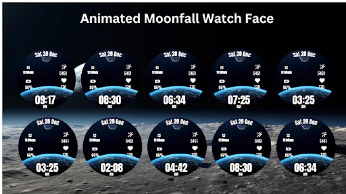 Experience the mesmerizing beauty of space with the Animated Moonfall Watch Face for Wear OS! This captivating watch face features an animation of the moon gently descending towards Earth, creating a unique and calming visual display. Perfect for space lovers and those who enjoy dynamic, celestial-themed watch faces.