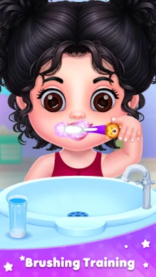 Kızım Maria, günlük kreş görevlerini öğrenmenize yardımcı olur: - Diş ve Ağız temizliği - Köpük banyosu ve bez temizliği - Doğum günü partileri için giyinme - Tuvalet Eğitimi