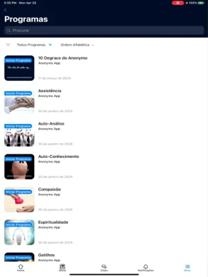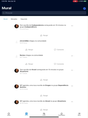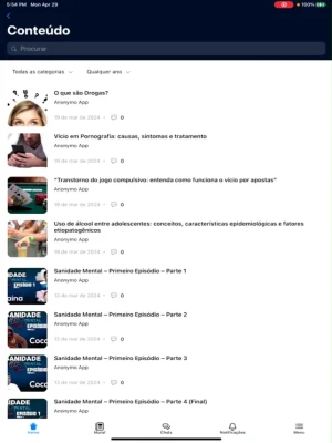 Nossa comunidade vai te acolher diariamente via reuniões, mensagens motivacionais e até vídeo-chamadas individuais com profissionais, para te ajudar a enfrentar dificuldades do dia-dia e te direcionar rumo a uma melhor qualidade de vida. Você também terá acesso ilimitado a chats, programas de autoconhecimento, leituras, depoimentos, vídeos, áudios e terapias guiadas.