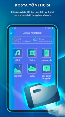 ● Dosya yöneticisi - cihazınızda dosya yönetimi için kullanışlı bir araçtır. Başka herhangi bir cihaza kablosuz bağlantı.