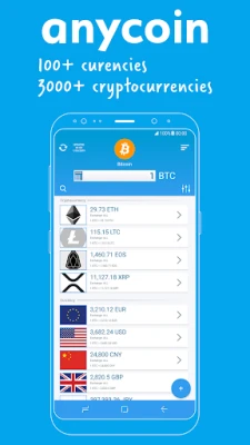 Anycoin, en güçlü ve kullanımı kolay para birimi ve kripto para birimi oranı dönüştürücüsüdür. Ethereum, Bitcoin, Steem, Storj, Litecoin, Dogecoin ve dünyanın her yerinden 100'den fazla para birimi de dahil olmak üzere binlerce kripto parasını destekler! Anycoin piyasaya sürülen tüm madeni para, jeton, Blockchain projeleri ve ekosistemler için oranları sunan tek para birimi dönüştürücüsüdür.
