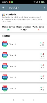 📊 İstatistikler: Her cevabınla ilgili doğru-yanlış analizini yap, başarı yüzdeni takip et. Hangi konuda daha fazla çalışman gerektiğini öğren, kendini sürekli geliştir.