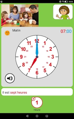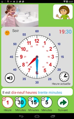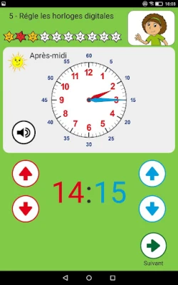 - L’horloge à aiguille indique le temps et l’utilisateur a pour tâche de compter :