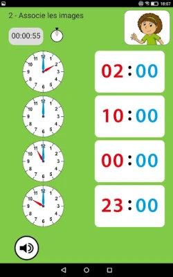 - Clique sur deux images correspondantes, association d’une photo avec une horloge digitale