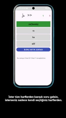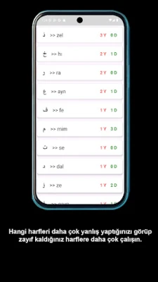 Arap alfabesini oyun oynar gibi sıkılmadan öğrenebileceğiniz bir uygulama. Uygulama tüm cevaplarınızı kaydettiği için zayıf olduğunuz noktaları analiz edip o harflere yoğunlaşabilirsiniz. Dilerseniz tüm alfabeden dilerseniz sadece seçtiğiniz harflerden rastgele harf sorusu çözebilirsiniz.