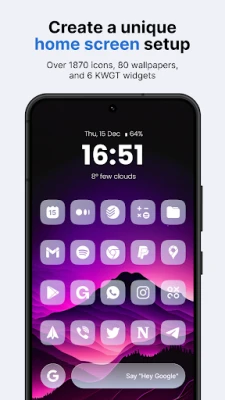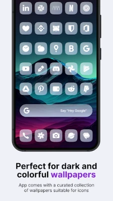 Introducing our squircle android icon pack - Ares Arctic. A unique and stylish collection of minimal white icons on a semi-transparent white squircle, perfect for any modern Android phone. With a focus on simplicity and elegance, these icons feature clean lines and a minimalist design that will elevate the look and feel of your homescreen and app drawer. The pack includes over 5,394 icons, 90 wallpapers, and 7 KWGT widgets to complete the look of your homescreen. For the price of one app, you get content from three different apps! Our Ares Arctic icon pack will take your homescreen design to the next level!