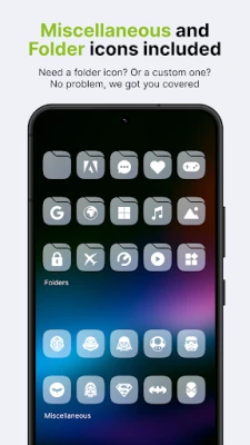 All our icon packs contain alternate icons for many popular apps, dynamic calendar icons, masking of unthemed icons, folders, and miscellaneous icons (you need to apply them manually).