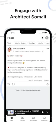 But Architect Somali's AI-Design is more than just a learning platform – it's a community of like-minded professionals who are committed to helping each other succeed. The app features a community feed where you can share ideas, ask questions, and connect with other members. You can also participate in workshops, join message rooms, and access a wide range of resources to help you stay on top of the latest trends and developments in the industry.