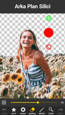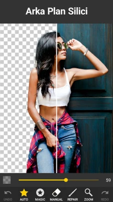 Arka plan silici, fotoğraflarınızın arka planlarını silmek için , 100% ücretsiz olan en iyi uygulamadır. Muhteşem sihirli silgi ile, kaldırmak istediğiniz alanı seçin ve hemen silin. Ardından eklemek için farklı bir arka plan seçebilir veya çekici bir beyaz arka planla bırakabilirsiniz. Beyaz arka plan ve şeffaf arka plan da dahil olmak üzere birçok farklı arka plan seçeneği sunuyoruz.