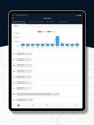 - comparativo de orçado versus realizado (gráficos e detalhamento)