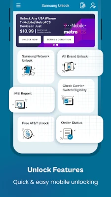 💻 Kullanıcı dostu tasarıma sahip uygulamamız, Android için SIM kart kilit açma araç setleri sunar. Ayrıca AT&T Samsung telefonlar için ücretsiz mobil SIM kilit açma kodları da sağlıyoruz.