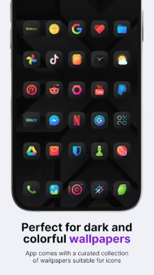 Athena Dark icon pack has 2,690 icons, 20 custom wallpapers, and 7 KWGT widgets, so it’s all you need to personalize your phone how you like it. For the price of one app, you get content from three different apps. Athena Dark icons combine solid and semi-transparent glyphs on top of the dark background, and the color palette for glyphs is vibrant. It goes well with almost any wallpaper - light, dark or colorful. *To apply KWGT widgets, you need KWGT and KWGT Pro apps.