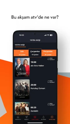 Yayın akışından izlemek istediğin dizi programın yanındaki ‘alarm’a tıkla. Dizin veya programın başladığında haberin olsun!