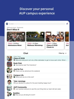 Connect with your classmates, and bring all of your AUP communication and events into a single, easy-to-use app.