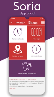 · Tiempos de llegada: busca por parada o por línea el paso en tiempo real y añade a Favoritos tu poste/parada para poder acceder directamente · Cómo llegar: selecciona un origen y un destino y elige entre diferentes opciones de ruta · Paradas cercanas: encuentra paradas cercanas a tu ubicación actual siempre que tengas activado el servicio de ubicación/GPS del móvil, a una dirección seleccionada o a tu última posición · Información de líneas: consulta el itinerario de una línea tanto en lista de paradas como en mapa y accede al horario de cada parada de forma fácil y sencilla · Avisos: infórmate de incidencias activas en el servicio de transporte urbano que puedan afectar a tu línea