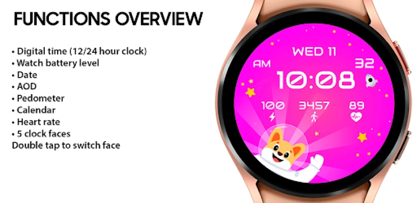 The device that knows you best. That is why I have developed a watch face that will be a great companion on the road to success. Track your fitness progress with a pedometer. New day new color of the dial. Enjoy a wide variety of widgets, from alarm to calendar.