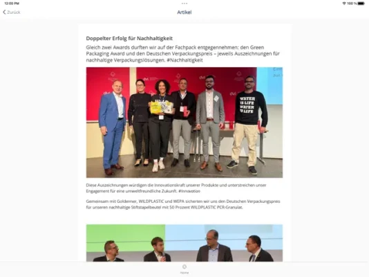 Weitere Features: • Sehen Sie auf einen Blick auf welchen Veranstaltungen Sie uns persönlich treffen können und laden Sie die Events in ihren persönlichen Kalender herunter • Erfahren Sie wie wir nachhaltige Verantwortung übernehmen • Erhalten Sie Push Benachrichtigungen direkt auf Ihr Smartphone • Teilen Sie Neuigkeiten über soziale Medien • Finden Sie uns in ganz Europa über den "Pfadfinder".