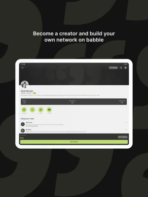 Share moments, learn, and get inspired when you talk directly with your favourite creators on babble. How it works: Find your favourite creator, load your account with funds, and pay them directly per minute only when you talk directly to them.