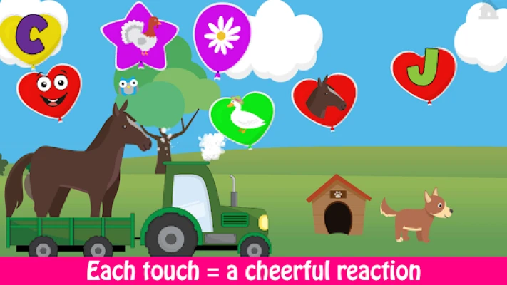 Our game is great fun for toddlers and babies from 1 year old. Each touch or swipe will cause a happy reaction in the game. Toddler can touch and swipe anywhere on the screen. The game is simple and intuitive.