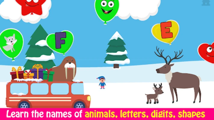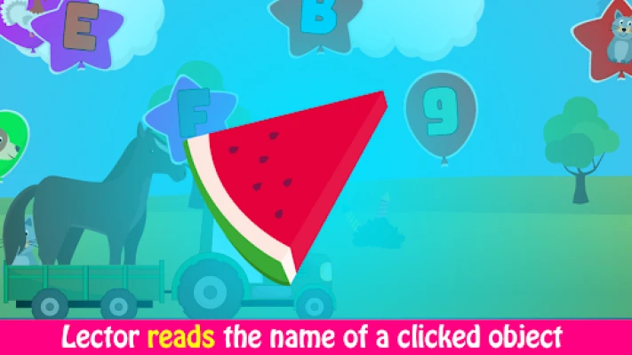 ★ By punching the balloons young kids will learn the names of individual animals, letters, digits, colors and geometric figures. The lector in the game will tell the child the name of the clicked object.