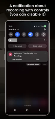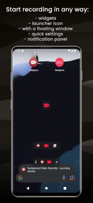 Bir widget, bildirim panelindeki hızlı ayarlar düğmesi veya diğer tüm uygulamaların üstünde görünen kayan pencereyi kullanarak arka planda video kaydetmek için BVR uygulaması.