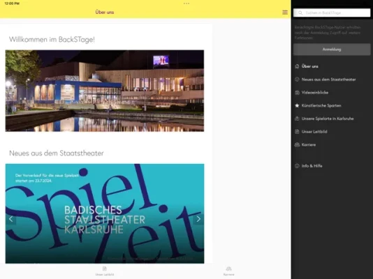 Durch großartige Kunst begeistern und verbinden: Die App 'BackSTage' hält für alle • Mitarbeiter:innen, • Bewerber:innen, • Zuschauer:innen, • Partner:innen und • weitere Interessierte Neuigkeiten sowie Infos zu Karrierewegen parat.