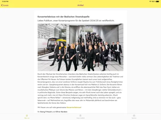Das Badische Staatstheater Karlsruhe steht für ein vielfältiges und diverses Kulturangebot für regionales und überregionales Publikum, für Kunsterlebnisse, die nachhaltig berühren und bewegen sowie für Kultur im Sinne der freiheitlich demokratischen Grundordnung. In der App finden sich • News, • Pressemitteilungen, • Veranstaltungshinweise sowie • Artikel zu Karrieremöglichkeiten am Haus.