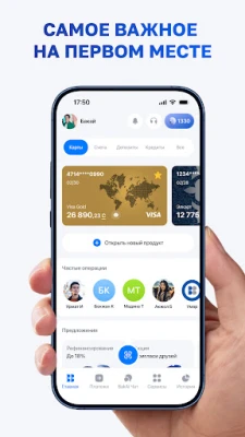 🔹 Управление счетами: Управляйте своими счетами и картами легко и удобно, следите за расходами и платежами с помощью всего одного касания.