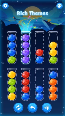 Simple Gameplay: Tap and move balls between tubes until all colors are sorted.