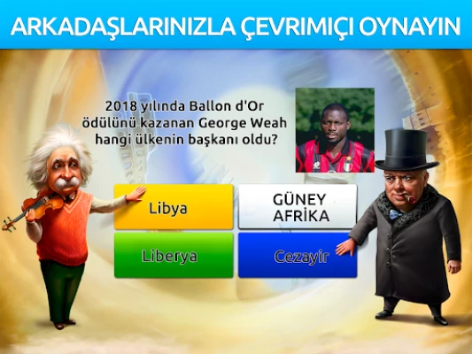 - Jeopardy oyunları sizin için yeterli değil mi? Gerçek bir quiz RPG'de bilginizi test edin; - Ücretsiz quiz oyunundaki sonsuz trivia test oyunu sorularına hayran kalacaksınız; - Bilginizi test edin ve doğru (hatta yanlış) cevaplarınız için değerli taşlar kazanın 💎; - Çevrimiçi arkadaşlarınızla oynayın. Akademide yarışın ve öğrenin 🏛; - En zeki oyuncuların listesinin zirvesine ulaşın ve turnuvaları kazanın 🏆; - Günlük genel kültür sorularından farklı, yalnızca özel olarak seçilmiş sorular ☝🏻; - Akinator sizin aklınızı okuyabiliyor, peki ya siz rakibinizin aklını okuyabilir misiniz? - Her gün tahmin yapmaya devam edin, beyninizi eğitin ve becerilerinizi test edin, bu oyun sizin için çocuk oyuncağı olacak! - Bilginizi serbest bırakın, çünkü bilgi güçtür!