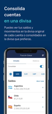 > Además, podrás consultar, de un solo vistazo, todas las cuentas en una misma divisa así como consolidar los saldos.
