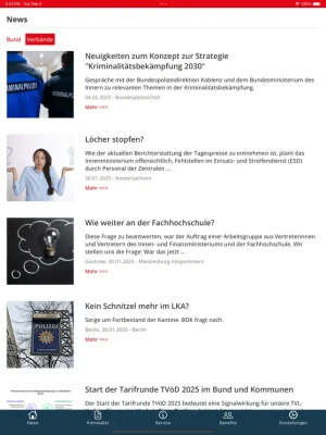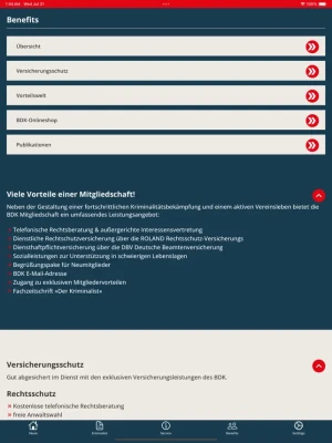 Gewerkschaftsthemen kommen in der App nicht zu kurz. Unsere Positionen zu Gesetzesinitiativen, kriminalpolitische Bundesthemen und BDK-Forderungen sowie aktuelle Neuigkeiten aus den 16 Landesverbänden und den Verbänden Bundespolizei/Zoll und Bundeskriminalamt: Der News-Bereich zeigt einen Querschnitt unserer täglichen Arbeit und spiegelt das wider, was wir sind. Die Interessensvertretung der Kriminalpolizei. Abgerundet wird das Angebot mit einem Überblick der zahlreichen Mitgliedsleistungen und Vorteile im Bereich Benefits sowie ein umfassendes Serviceangebot für Mitglieder.
