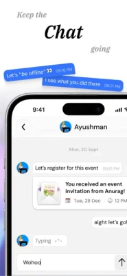 Continue conversations with people you meet even after events end. Share photos and plan future experiences.