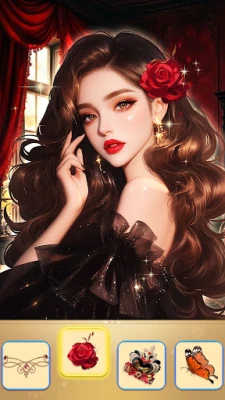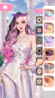 - Moda oyunlarında özenle seçilmiş bir güzellik seçkisinden makyaj ve giydirme öğelerini uygulamak için kaydırın.