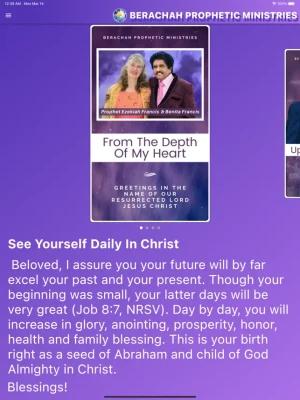 The Word of the Lord came to Brother Ezekiah Francis in a distinct audible voice saying, "Raise me an army." In obedience to God's voice, Berachah Prophetic Ministries was founded in 1988.